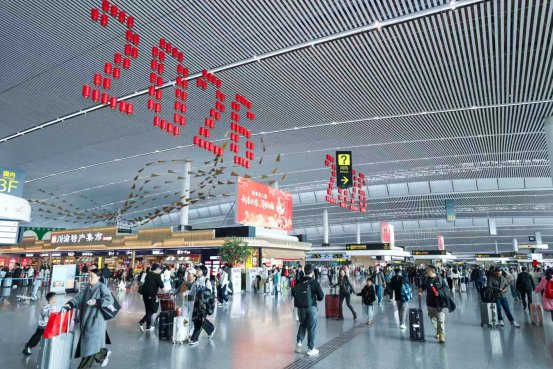 同时,旺盛的航空出行需求是今年春运的显著特点。数据显示,春运期间重庆江北机场整体客座率约89.1%,位居全国十大机场首位。