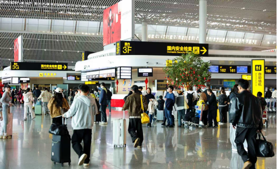 国内首个民航全域数字孪生系统,提前预判客流高峰、智能调配资源,助力航班靠桥率、运行效率稳居全国前列;3秒刷脸登机、刷证安检、自助值机等智能化服务,有效缩短旅客排队等候时间;